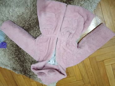 - Topao plišani roze ogrtač/kaputić sa kapuljačom i ušima, rajsferšlus, džepovi.