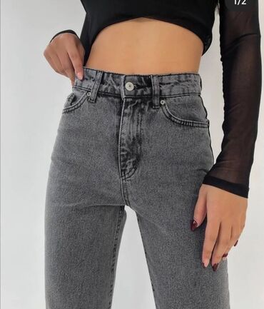 Sive ženske farmerke FAF – model “MOM COMFORT-2654” - Veličina: 36 - Sastav: 99% pamuk, 1% likra (blaga elastičnost) - Kroj: mom fit/comfort, visok struk, uske nogavice prema dole - Boja: isprano s...