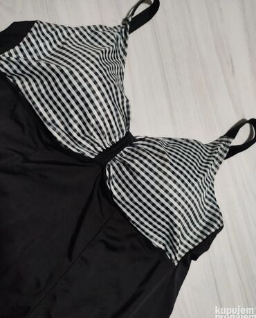 - Boja: crna sa gornjim delom u crno‑belom kockastom (gingham) dezenu