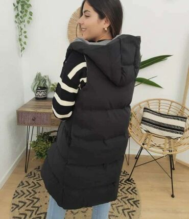 Duga ženska prsluk-jakna bez rukava, brenda Orcelly Fashion, veličina S. Model u crnoj boji, quilted/štepovan, sa kapuljačom i crnim učkurima sa metalnim završecima. Spoljašnji materijal izgleda ka...3 500 RSD