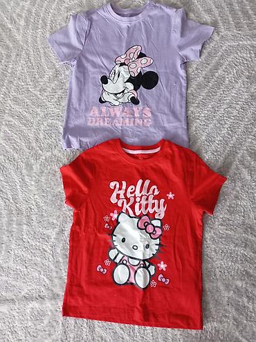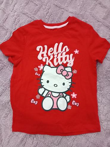 • Crvena majica sa printom Hello Kitty i cvetićima, natpis “Hello Kitty”.