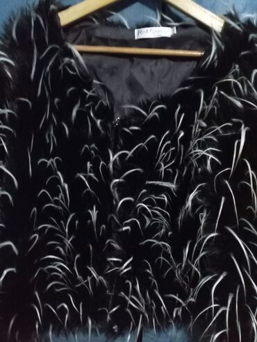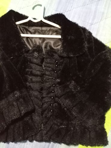 - Kratka crna jakna/bolero od veštačkog krzna: široka kragna, dekorativno prošivanje u cik-cak motivu, niz sitnih dugmadi napred, podstavljena.