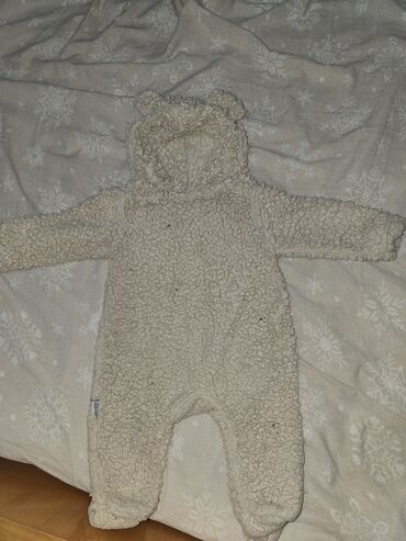 Topli zimski kombinezoni za bebe – više modela i veličina - Bež plišani kombinezon sa kapuljačom i ušivenom njuškicom (mačkica), preklopno kopčanje na drikere sa strane, zatvorena stopala. Veličin...