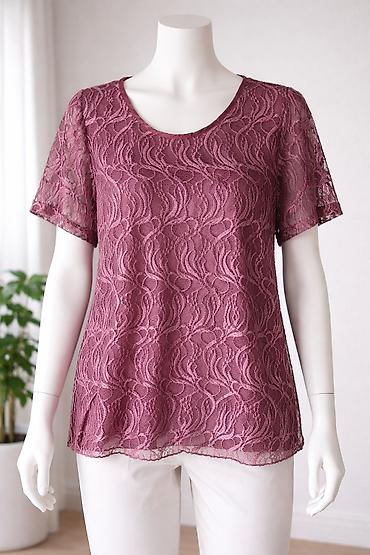 Čipkana bluza u boji šljive - Model: ravnog kroja, blago A-linija -