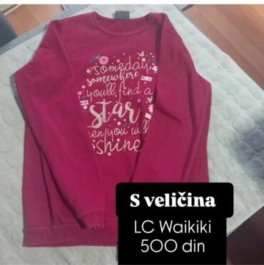 Dukserica LC Waikiki, veličina S. Boja: tamnocrvena/ bordo. Model sa dugim rukavima i okruglim izrezom. Prednji deo ukrašen printom sa natpisom “Someday, somewhere you’ll find a star then you will shine”, floralnim detaljima i zvezdicama. Materijal mekan i prijatan za svakodnevno nošenje.