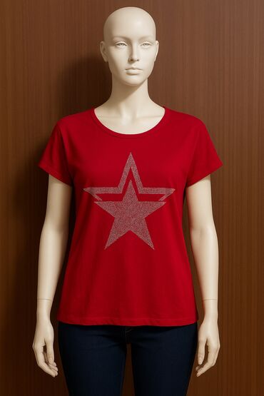 Ženska majica kratkih rukava – crvena, sa printom zvezde
