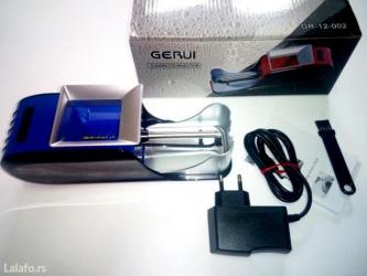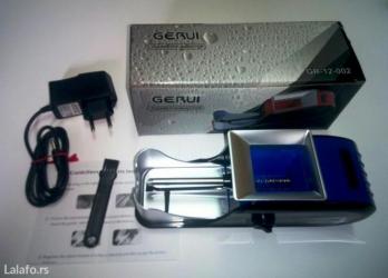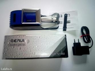 model masinica za motenje duvana je gerui gr-12-002. Odlicna nova profi masinica za motanje duvana. Koristi se za kucnu upotrebu. Proizvedena od renomirane firme gerui. U nekoliko minuta mozete namotati celu paklicu cigreta. Ima 3 nivoa gustine punjenja , veoma jak motor koji pored velike snage tiho radi , sto je odraz vrhunskih performansi. Brzo puni i odlicno presuje duvann unutar cigaree. Mozete koristiti sve vrste standardnih filtera. Ova masinica se smatra jednom od najboljih na trzistu. Moguce je licno preuzimanje u nisu ili slanje postexpresoom za srbiju, kupac placa ptt.