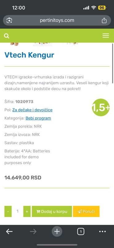 - Preporučeni uzrast: godine (naznačeno)
