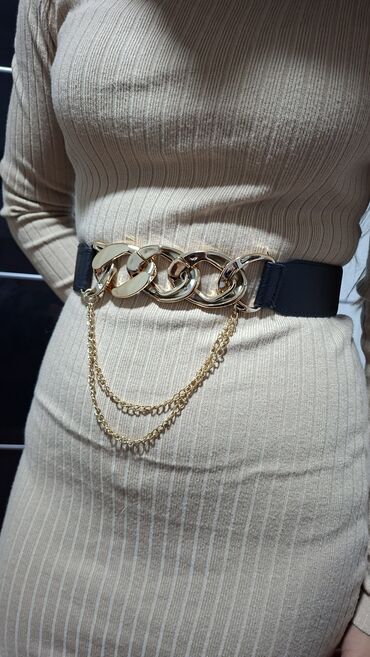 - dekorativni dupli zlatni lančići koji padaju preko kukova