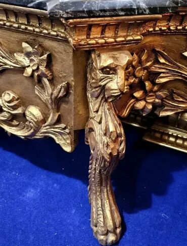 Stare pozlacene drvene konzole u dobrom stanju. Visina 33cm a dimenzija ploce 23x13.5cm. Cenapo komadu.+381 64 33335xx