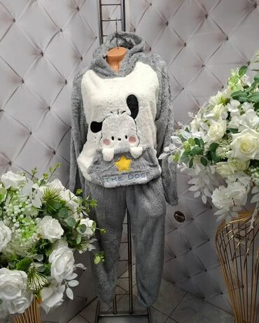 Ženski komplet trenerke od pliša - Dvodijelni set: gornji deo sa rajsferšlusom i kapuljačom, donji deo sa elastičnim pojasom i ranflama na nogavicama. - Materijal: meki, baršunasti pliš koji je ...