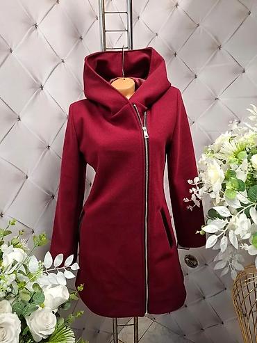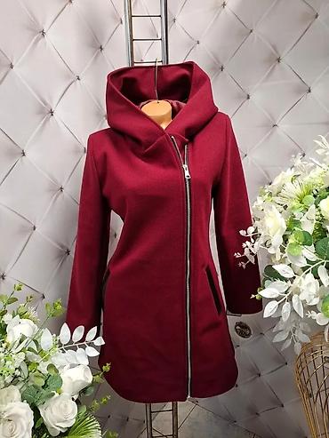 Ženska kaput‑jakna sa kapuljačom – bordo boja - Elegantna