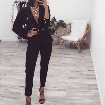 Ženski elegantni komplet sa prugama – košulja i pantalone sa visokim strukom - Kroj: sofisticiran, inspirisan odelom; gornji deo sa dubokim reverom i dugmadima napred, dugi rukavi; pantalone širok...