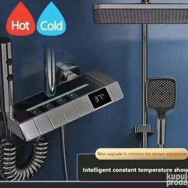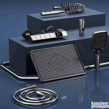 Tuš kabina sa kliznim vratima i staklenim panelima - Dimenzije: približno veliki pravougaoni model (širina oko 150–170 cm, dubina oko 80–90 cm; vizuelno za dve osobe/komforno tuširanje). - Konstru...