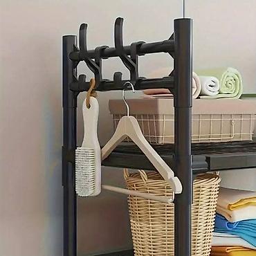 Višenamenska polica za veš sa točkićima, dizajnirana za lakšu organizaciju i sortiranje odeće u kupatilu ili Struktura: Polica se obično sastoji od tri nivoa. Gornji nivo služi kao fiksna polica ...