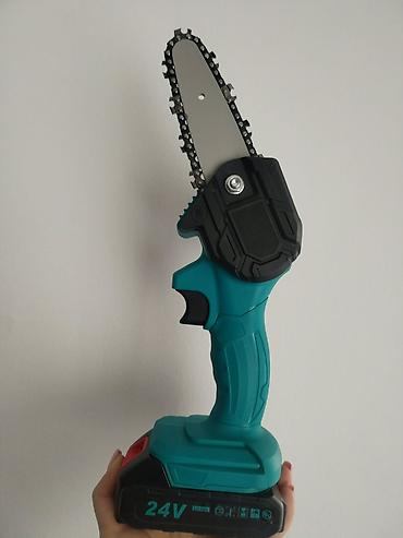 Akumulatorska mini lančana testera – set Opis: - Kompaktna ručna testera sa lancom i mačem male dužine, idealna za orezivanje grana, baštenske radove, pripremu ogreva i rad na teško dostupnim mest...