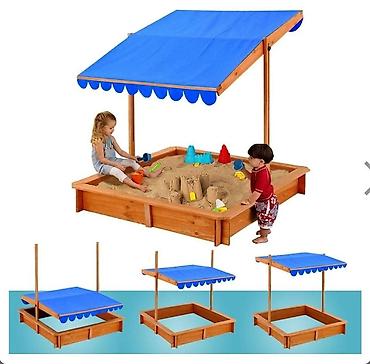 Pošto se lako sklapa, deca mogu brzo da ga zauzmu. Visina krova je podesiva (do 110 cm). Drvene daske za sedenje prolaze duž 4 strane peskarnika, tako da se i roditelji mogu udobno smestiti dok se igraju (nosivost 80 kg).