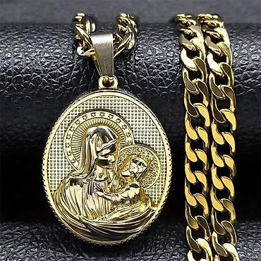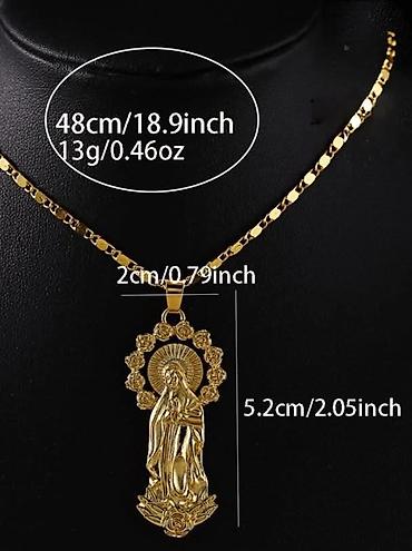 Pozlaćeni lančić sa medaljonom – religiozni motiv - Materijal: metal sa zlatnim premazom (sjajna, polirana završna obrada) - Dužina lanca: 48 cm (18.9 inča) - Težina kompleta: 13 g (0.46 oz) - Kop...