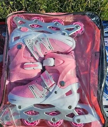 Rosule na četiri točka + kaciga + štitnici - Rosulei na četiri točka (quad) u roze boji, sa čičak i kopča zatvaranjem za brzo i sigurno fiksiranje stopala. - Podesiva veličina: S (29–33), vidljivo...