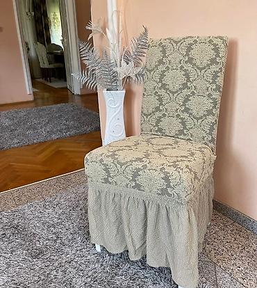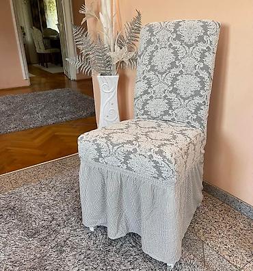 Navlake za stolice – elastične, teksturirane - Materijal: elastični žakard/štof sa kvadratastom, reljefnom teksturom koja lepo prijanja uz formu stolice - Dizajn: univerzalni kroj za visoka naslon...
