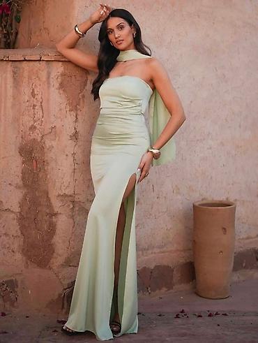 Elegantna ženska večernja haljina – dugi model bez bretela - Kroj
