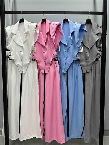 🔥Ženski komplet – prsluk sako kroja + široke pantalone - Elegantan dvodelni komplet u pastel tonovima (svetloružičasta, bež, siva, pistacija).