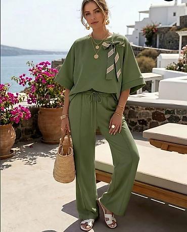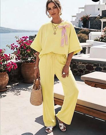 ✅Ženski komplet – široke pantalone i bluzica sa kratkim rukavima ✅2500 din ✅S M L