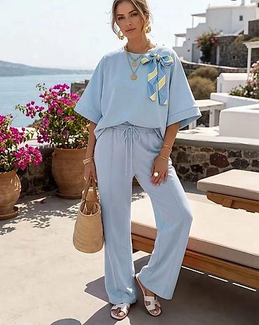 ✅Ženski komplet – široke pantalone i bluzica sa kratkim rukavima ✅2500