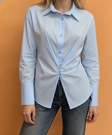 Elegantna ženska košulja Evaroza S - Rukavi: dugi, sa širokim manžetnama i ukrasnim metalnim zlatnim dugmetom na manžetni - Boja: svetloplava (pastelna) - Materijal: lagan, gladak i prijatan na dod...