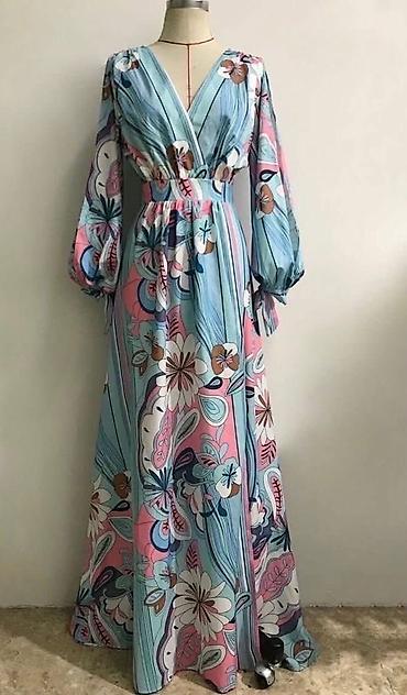 Midi haljina sa floralnim printom - Kroj: košulja-haljina do sredine listova, lagano A-krojena, naglašen struk. - Rukavi: puf, do lakta, daju volumenu i romantičan izgled. - Ogrlica/izrez: košulja...