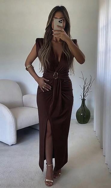 🔥Cena 4300 din dostupna i u crnoj boji Elegantna večernja haljina u čokoladno braon boji sa diskretnim sitnim sjajnim tačkicama. Model je dugačak, uske linije, sa dugim rukavima i okruglim izrezom...