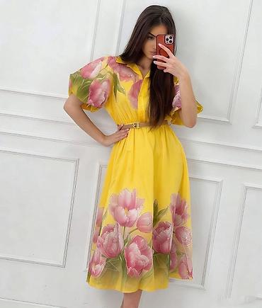 💫Midi haljina sa puf rukavima i kvadratnim izrezom ✅200 0din