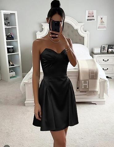 Elegantna večernja haljina – crna, duga, bez bretela uska silueta koja prati liniju tela, sa produženim šlepom pri dnu za sofisticiran izgled odgovara s/m velicini nikad nosena