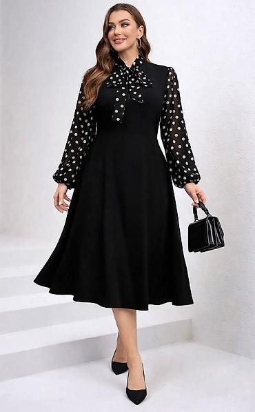 Crna haljina sa dubokim dekolteom. Duzina i sirina na slikama