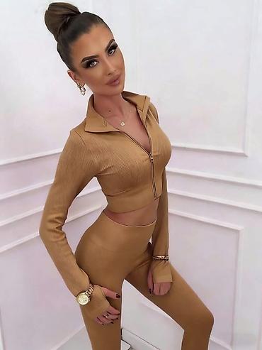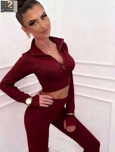 Ženski elegantni komplet sakoa i pantalona - Kroj: strukirani dvoredni sako sa reverima i dugmadima u tonu; ravne pantalone srednjeg struka, dužina do članka. - Materijal: glatka tkanina sa blagim...