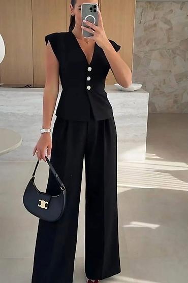 Ženska jakna od eko kože sa detaljima od veštačkog krzna + torbica (fanny pack) s animal printom - Jakna u crnoj boji, prednji i donji rubovi naglašeni bež/karamel veštačkim krznom. - Rebraste ple...