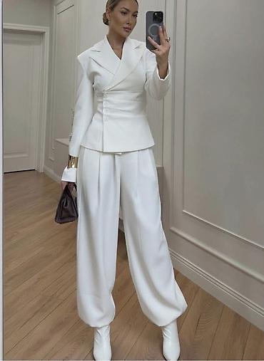 Dvodijelni komplet u boji svijetloružičaste: kratki sako i mini suknja