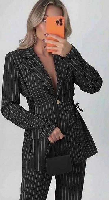 Ženski komplet pantalonа i kratkog sakoa sa prugama - Dvodijelni set