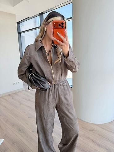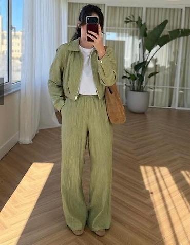 Damski komplet:tunika širokog kroja i pantalone širokih nogavica. - Lagani saten prijatan na koži i lepršav. - Kroj bluze pončo/kimono stil, široki rukavi,opušten silueta, okrugao izrez. - Pantalon...