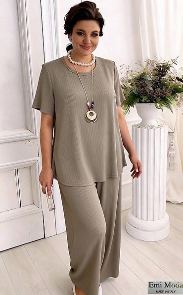 Dvodelni ženski set – košulja i pantalone s visokim strukom - Dizajn: elegantan komplet koji vizuelno naglašava struk. Košulja na pruge krojena je kao kratki model koji se uklapa u visoki struk pa...