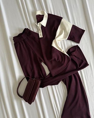 • Damski komplet – sako i pantalone u bordo boji i majica - Elegantne