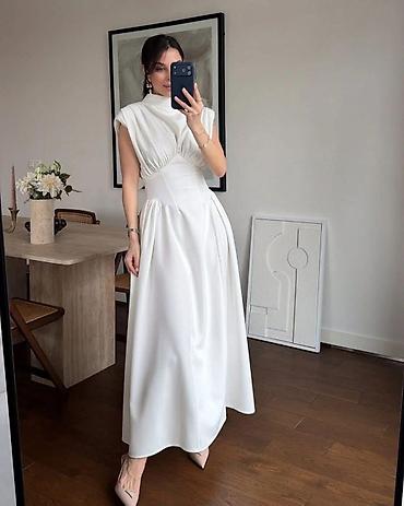 Elegantna midi haljina sa plisiranom suknjom - Kroj: struk naglašen, blago plisirana A-linija koja pada do polovine listova; gornji deo glatko oblikovan sa princes šavovima za lepšu siluetu. - Izr...