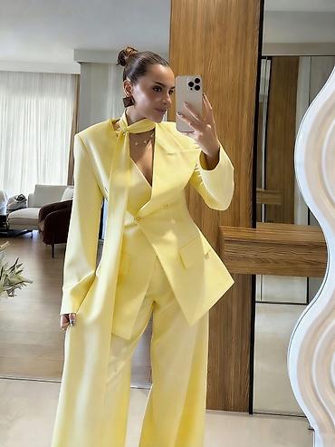 • Komplet široke pantalone visokog struka na lastiz i bocnim dzepovima