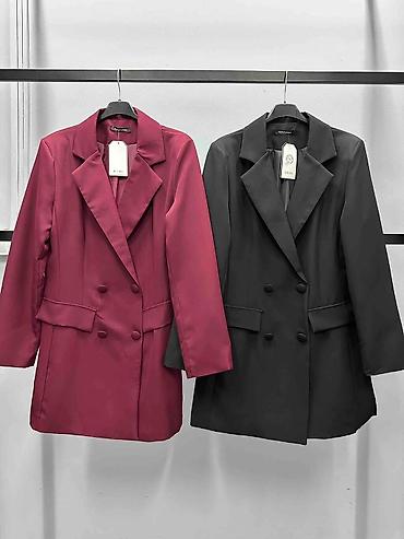 Ženski elegantni blejzer – bez kopčanja - Kroj: ravna linija sa dužinom preko kukova, otvoren prednji deo bez dugmadi, lagano podignuti rukavi 3/4 efekta - Revere: široki, meki šal-kragna izgled z...