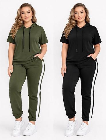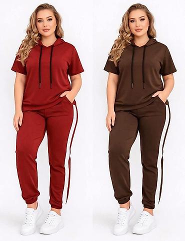 Ženski komplet trenerke – dukserica kratkih rukava + donji deo - Model: dvoslojni komplet za svakodnevno nošenje i trening - Gornji deo: majica/duks sa kratkim, širokim rukavima i okruglim izrezom...