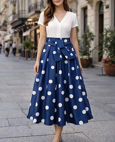 ✅Midi suknja na tufne sa mašnom u struku - Kroj: A-linija, midi dužina ispod kolena, lepršav pad sa blagim plisovima - Visoki struk sa širokim pojasom i dekorativnom mašnom napred; pojas vizuelno ...