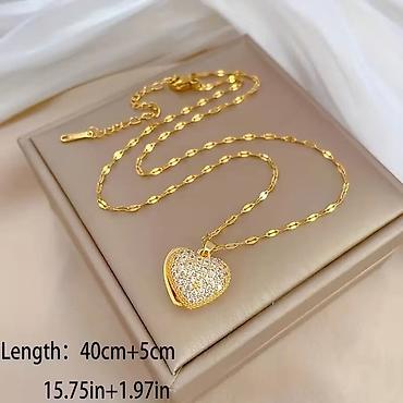 Zlatna ogrlica sa medaljonom u obliku srca - Dizajn: srcoliki medaljon koji se otvara, sa unutrašnjim biserom; spoljašnja strana bogato ukrašena sitnim, blještavim kamenčićima za intenzivan sjaj. ...