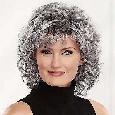 Perika srednje dužine sa šiškama – sivo-beli ombré - Stil: ravna