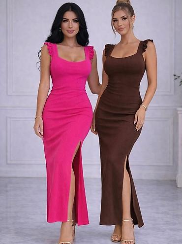 🎗️ Haljina – 3100 din - Elegantna duga satenska haljina sa prorezom