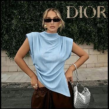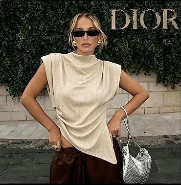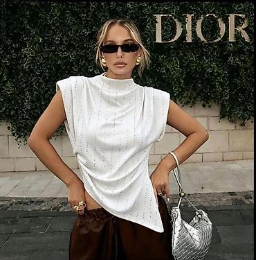 Ženska garderoba – set majica i bluza - Bela pamučna majica sa kratkim rukavima i okruglim izrezom; dekorativna mašna na levoj strani grudi i diskretan ukrasni štep dijagonalno preko ramena. Brend...